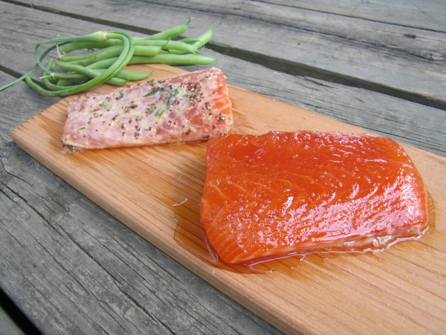 Barbecue Method: Place on maple or cedar plank (follow plank instructions for soaking). Please on indirect heat and close the lid to the barbecue. Let cook for 10 minutes before opening the lid. Turn the plank 180 degrees so the other side is now facing the heat. Close lid for another 5-10 minutes until the glaze has formed a crust and the salmon is cooked through.