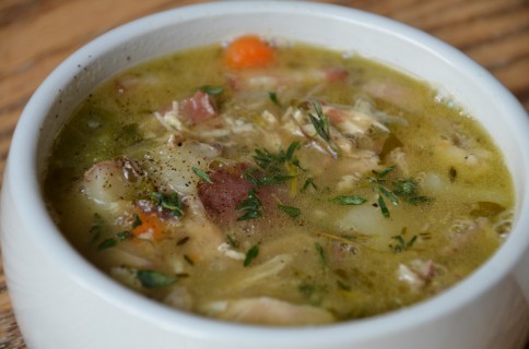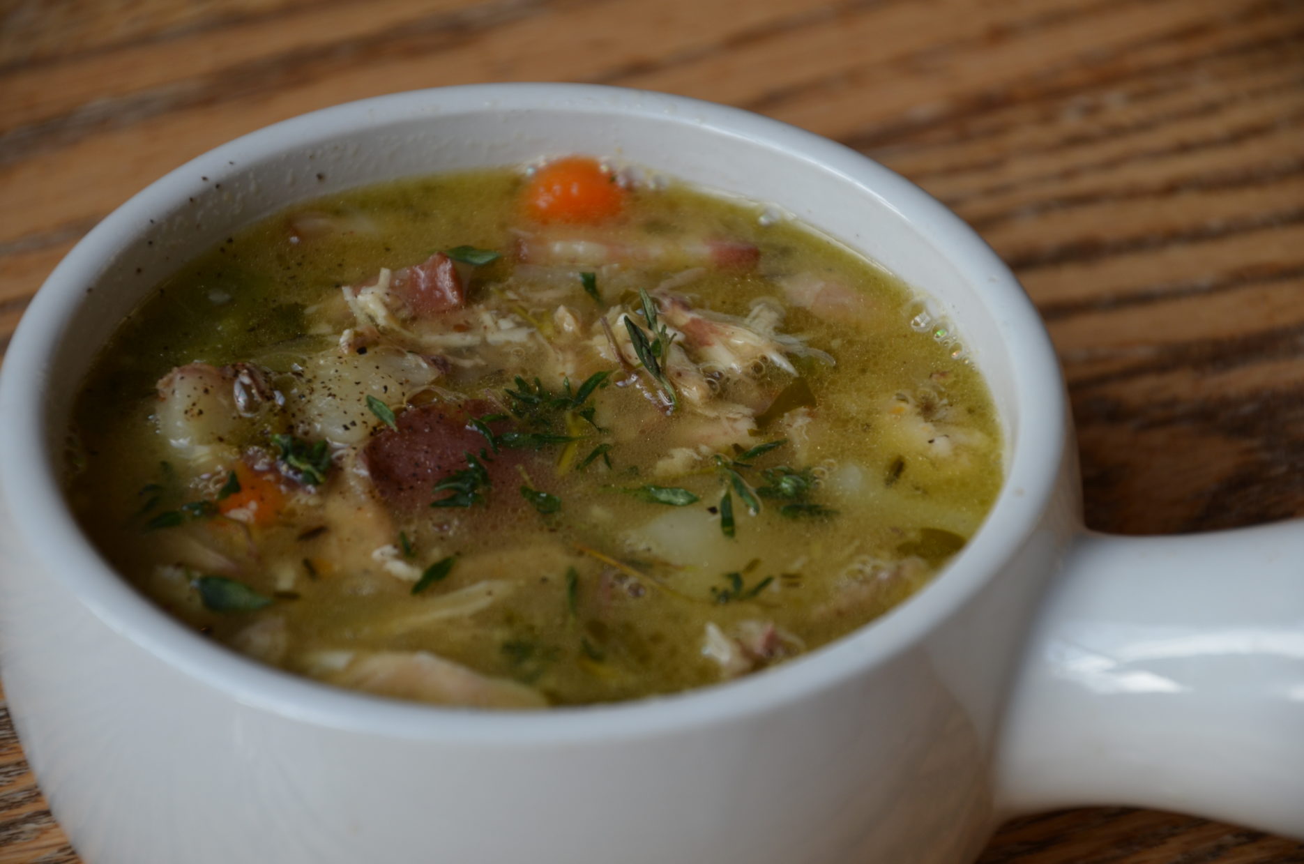 – 2 Cups leftover cooked meat (Turkey, Ham, Cornish Hen, Chicken, etc.) and any bones